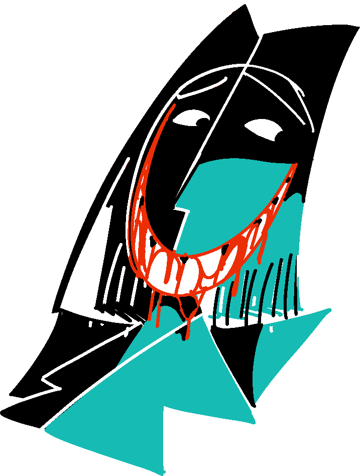 For some inane reason you close the distance between yourself and that blue dread structure, fighting every step to overcome self preservation instincts that scream “run you idiot, RUN!” Even if you wished to run however, the snow crops up to your knees; there is no fleeing in this place. The winter night air is sickly here, a not quite pitch black, the color of tepid diluted coffee permeated by the hideous luminescence of the snow reflecting the moon rays as if in a mockery of its attempt to bring comfort to the season. Out of that ink wash sky, out of the ice storm, extends the long neck, the cruel smile, the hateful eyes, the bemused face, the devilish shape of The Slasher.