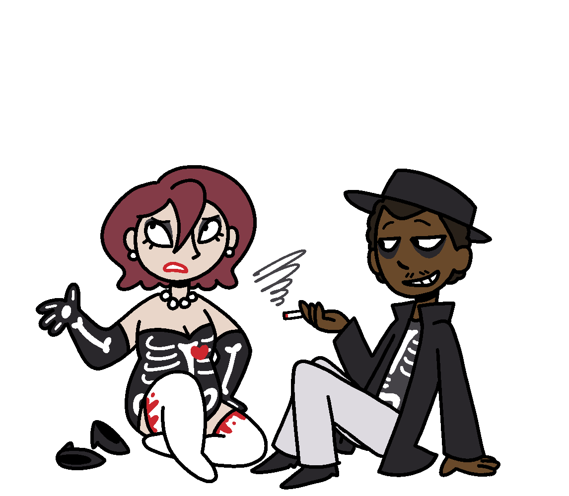 Two panel comic strip of Hobble the Hound and Maisy Braybell, two rubberhose cartoon dogs. They are shown digging up graves. Maisy grabs a disembodied skeleton arm and says "I'll chew on this later!"